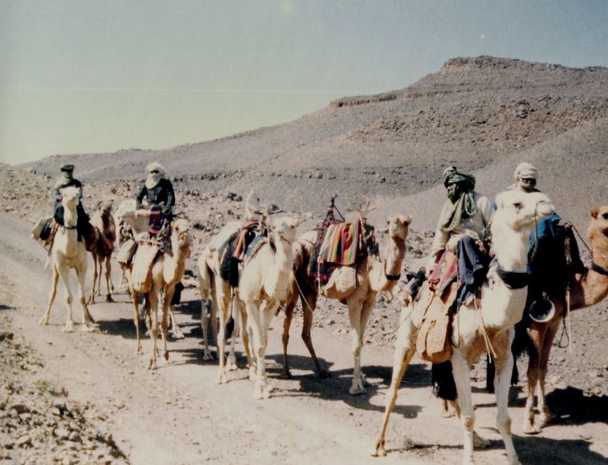Caravana en el Sáhara argelino 1990. Foto de Yelles C.M.A. – Hoggar. Wikipedia