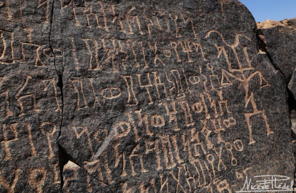 Este legado de arte rupestre muestran representaciones humanas, de animales, de caza, estilos de vida, miles de inscripciones escritas en arcaicos y lejanos idiomas hablados a lo largo de muchos siglos (arameo-nabateo; thamúdico preislámico, griego, árabe clásico…). Una extraordinaria biblioteca de innumerables y compactas páginas de piedra.